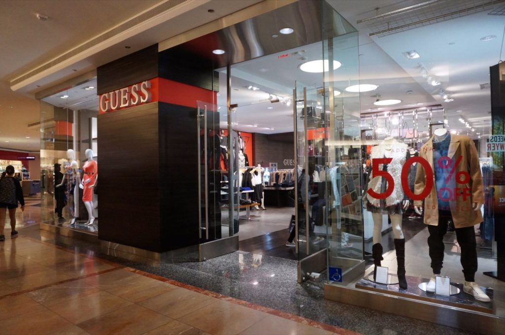 Pomerjanje najrazličnejših kosov guess oblačil v eni izmed njihovih poslovalnic